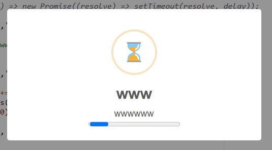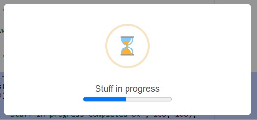 As of the "SweetAlert Dialog" ruleset include v202502A, we can now present a waiting dialog, which presents with an hourglass icon and an animated progress bar.